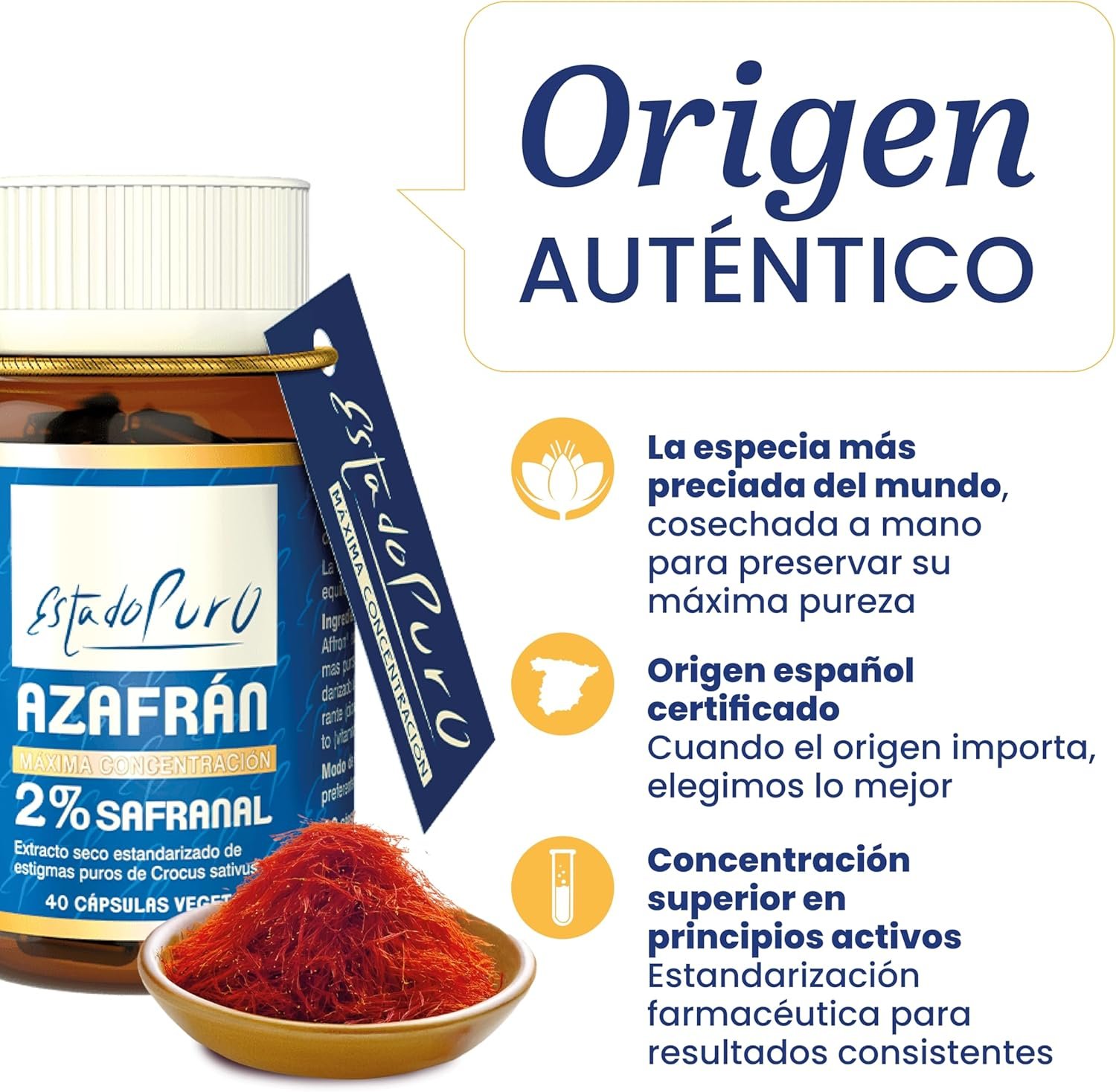 Descubre Affron®, el único extracto seco de azafrán 100 % puro, español y genéticamente certificado. Obtenido exclusivamente de los estigmas de Crocus sativus L., este «oro rojo» actúa desde dentro para apoyar tu equilibrio emocional, ofreciendo una pureza y eficacia inigualables.