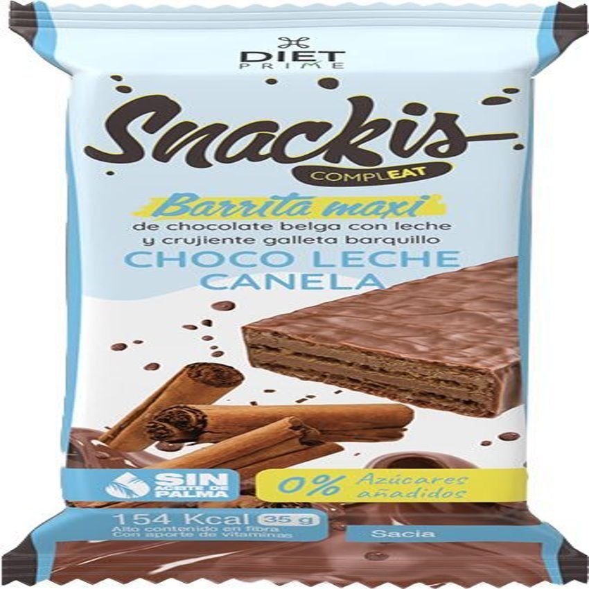 Barrita Snackis Compleat de Choco, Leche y Canela – Diet Prime · Herbora · 35 gramos: Las Snackis Compleat Diet prime de chocolate belga y crujiente galleta barquillo ofrecen una alternativa nutritiva. Con un contenido del 15% de la cantidad diaria recomendada de 12 vitaminas y una alta dosis de fibra, estas barritas son perfectas para satisfacer el apetito y mantenernos saciados por más tiempo. Además de ayudar a equilibrar nuestra dieta, favorecen el tránsito intestinal.