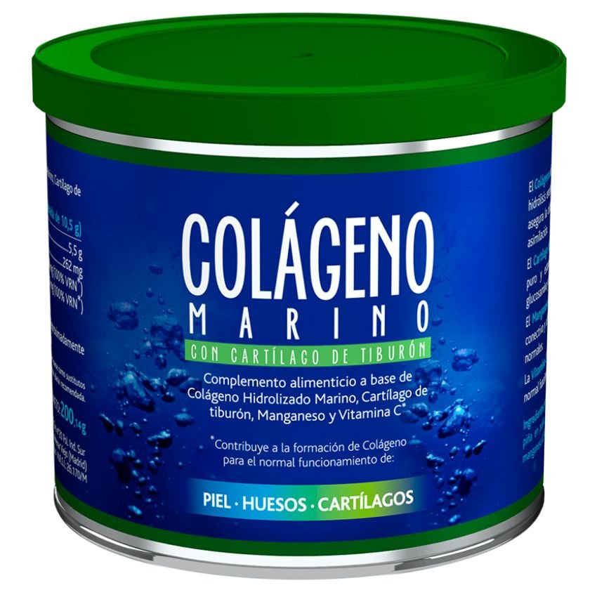 El Colágeno Marino proporciona péptidos de colágeno para que nuestras células puedan regenerarlo, previniedo así lesiones por el deterioro y frenando las molestias ocasionadas. Además, el Colágeno Marino está constituido por un 20% de Glicina y un 8% de Arginina, aminoácidos que contribuyen al rendimiento deportivo y favorecen la síntesis de Creatina para restaurar la masa muscular después del ejercicio. Otros componentes del producto: Cartílago de Tiburón: 100% Puro y estandarizado en los mucopolisacáridos activos glucosamina y condroitina, componentes fundamentales del cartílago y precursores del ácido hialurónico.