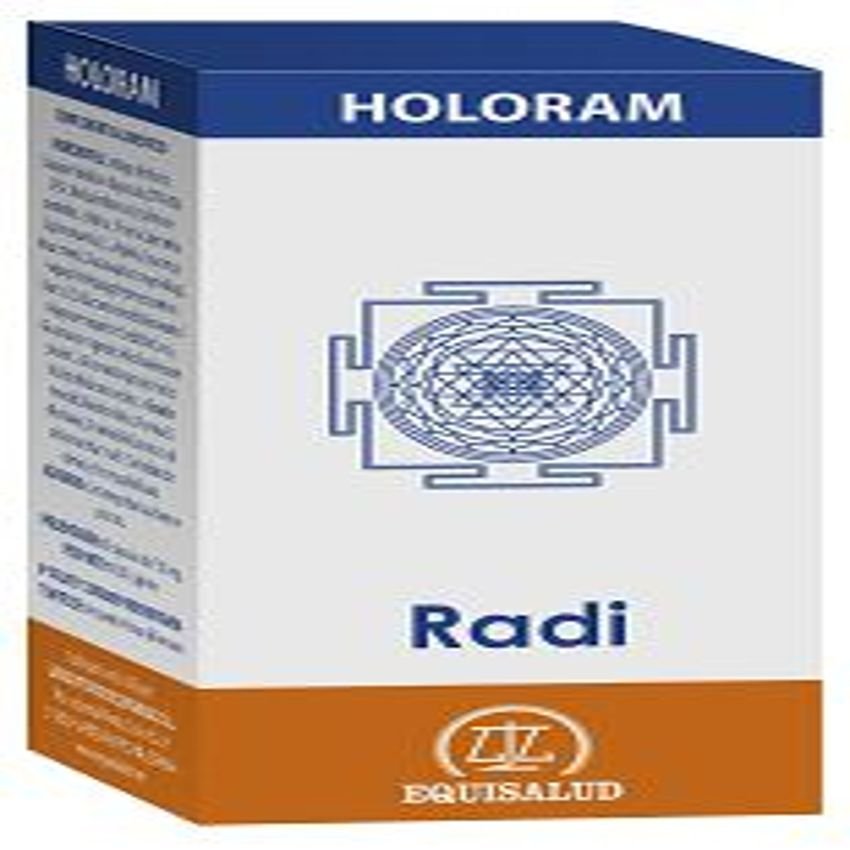 HoloRam Radi · Equisalud · 60 cápsulas: HoloRam Radi protege de los efectos energéticos negativos del espectro electromagnético en toda su banda, desde las radiofrecuencias y las microondas pasando por las radiaciones telúricas y las ionizantes hasta la que denominamos «radiación humana», ligada especialmente a las sobrecargas emocionales que afectan a nuestros sistemas de adaptación. HoloRam Radi nos protege de los efectos nocivos de una amplia gama de radiaciones. Sus componentes energéticamente activados han sido equilibrados para favorecer la activación de los sitemas de protección natural de los efectos nocivos de radiaciones de diferentes frecuencias.