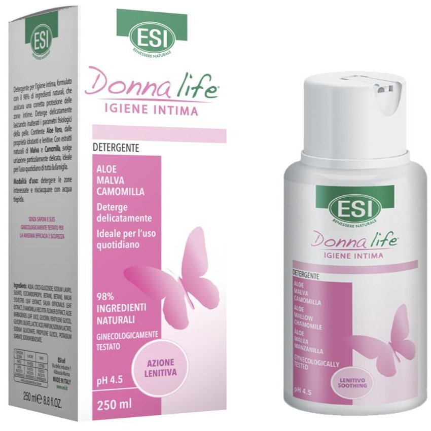 El Jabón Íntimo Calmante Donna Life de ESI es un producto para la higiene íntima, formulado con un 98% de ingredientes naturales que aseguran una correcta protección de las zonas intimas. Limpia suavemente sin alterar los parámetros fisiológicos de la piel. Contiene Aloe Vera que ejerce una acción hidratante y calmante. Gracias a la presencia de Salvia y Mentol proporciona una agradable sensación de frescor y bienestar que perdura por mucho tiempo.