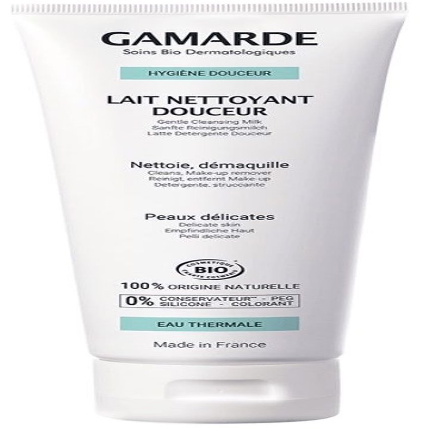 Leche Limpiadora Suave de Gamarde indicado para pieles delicadas, secas o mixtas. Elimina todo rastro de impurezas y maquillaje y deja la piel limpia, suave y flexible. Ingredientes (INCI): Gamarde aqua (Gamarde water), Elaeis guineensis (Palm) oil*, Helianthus annuus (Sunflower) seed oil*, cetearyl alcohol, parfum (Fragrance), coco-glucoside, Argania spinosa (Argan) kernel oil*, Glycerin, glyceryl stearate citrate, cetearyl glucoside, Corylus avellana (Hazel) seed oil*, Cera alba* (Beeswax), glyceryl caprylate, Cymbopogon martini (Palmarosa) oil*, Citrus aurantium dulcis (Orange) peel oil*, xanthan gum, citric acid, citral, citronellol, farnesol, geraniol, limonene, linalool. * Ingredientes procedentes de agricultura ecológica.