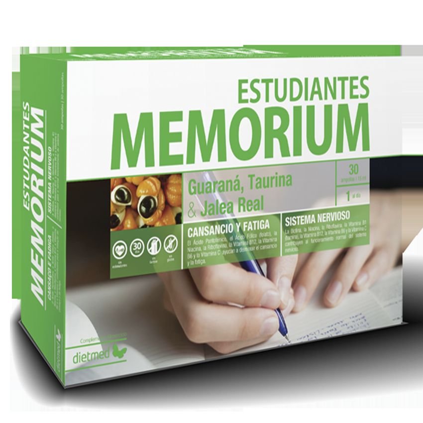 Todas las tareas que se llevan a cabo en el día a día dpenden de la actividad del cerebro, tales como leer y comprender textos, hacer recados, recordar los nombres de personas y lugares, reconocer a alguien, hacer cuentas, establecer relaciones sociales, interactuar con la sociedad y el medio ambiente que nos rodea, reconocer colores y objetos y saber el camino a casa y al trabajo. De este modo, la memoria se vuelve muy importante.Sin embargo, hay varios factores que influyen en la memoria, a saber: Edad: la disminución de la memoria y de la función cognitiva es una consecuencia normal de la edad avanzada. Trastornos neuropsiquiátricos: Los síntomas neuropsiquiátricos tales como los cambios de humor, de la personalidad y los síntomas psicóticos son considerados como potenciales marcadores tempranos en el diagnóstico de estas enfermedades. Estrés oxidativo: Del estrés oxidativo resulta la formación de especies reactivas de oxígeno, radicales libres que contribuyen a desencadenar y avanzar en numerosas patologías, incluyendo neurodegenerativas, trastornos metabólicos, cáncer y envejecimiento prematuro. Estrés: La movilización de la energía inducida por el estrés debe adaptarse a las necesidades para restaurar el equilibrio orgánico y debe persistir por un tiempo limitado, que no comprometa el organismo, pues su cronicidad causa efectos inhibitorios sobre el rendimiento cognitivo, la memoria, reproducción, la digestión y la respuesta inmune. Aparte del trabajo, el período de examen se corresponde con un «pico de estrés» en las vidas de los jóvenes, verificandose un aumento en el número de consultas psicológicas, y de psiquiatría así como en la demanda de productos que pueden «ayudar en el estudio». También se observó que los hombres y las mujeres tienen diferentes capacidades cognitivas y, por supuesto, interpretan la realidad de otra manera, se comunican de manera diferente. En general, las mujeres tienen mayor memoria verbal y cognición social, mientras que los hombres muestran mayores habilidades motoras, así como una mayor capacidad para la visualización tridimiensional.La gama Memorium presenta soluciones pescíficas para cada necesidad, adaptadas a la actividad, la función, el género y la edad del individuo.Recomendaciones:✔︎ Alimentación saludable y equilibrada.✔︎ Actividad física regular y adecuada al actual estado de la salud.✔︎ Ser positivo, encarando la vida con entuasiamo y humor, en todas sus vertientes.✔︎ Respetar los ritmos circadianos y horarios del organismo, principalmente en lo que se refiere a sueño.✔︎ Recurrir, siempre que sea necesario, a los complementos alimenticios.Indicaciones de uso:⊕ Aumenta la obtención de energia.⊕ Mayor rendimiento físico y psíquico.⊕ Útil en momento de mayor esfuerzo intelectual.⊕ Mayor y menor concentración.Ingredientes activos por ampolla: 520 mg de taurina. 450 mg de jalea real. 200 mg de extracto de guaraná (mínimo 22% cafeína). 90 mg de L-Carnitina. 75 mg de colina. 30 mg de bioflavonoides. 2,2 mg de vitamina B1. 2,8 mg de vitamina B6. 5 mcg de vitamina B12. 400 mcg de ácido fólico. 12 mg de ácido pantoténico. 100 mcg de biotina. 160 mg de vitamina C. 20 mg de zinc.