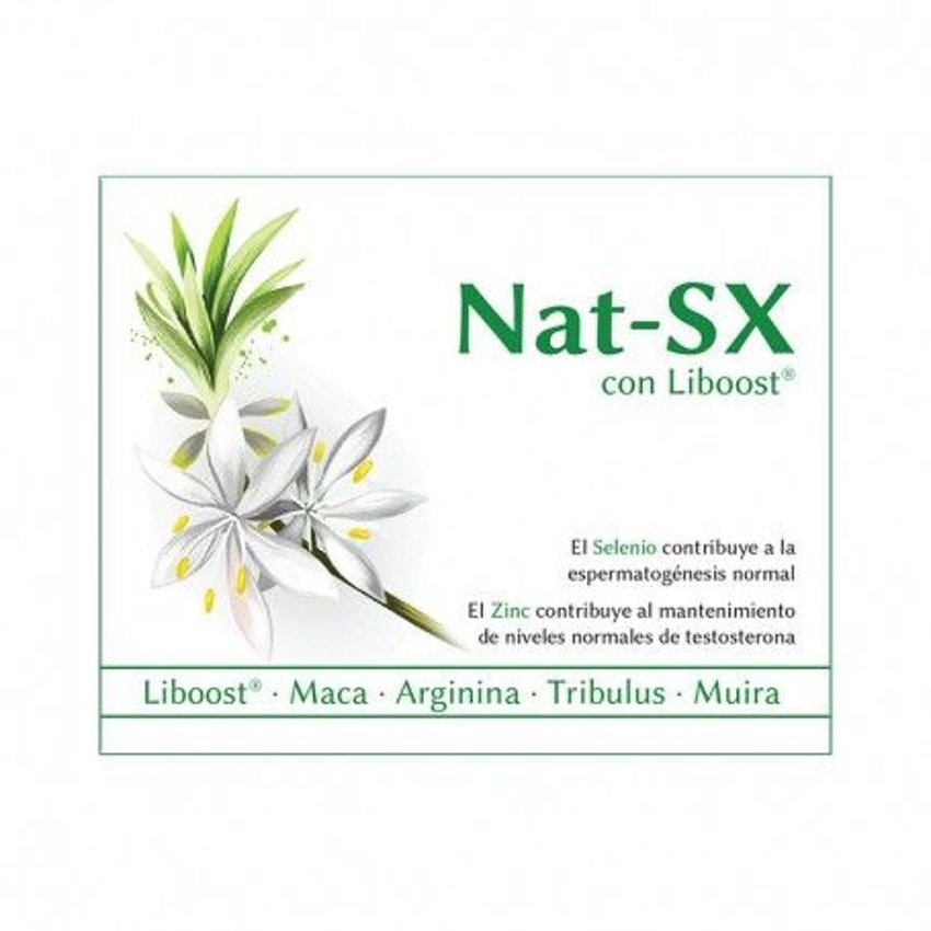 Nat-SX de Espadiet funciona como potenciador para el vigor de los hombres que quieren conseguir en breves minutos una mayor potencia y vigor durante el acto sexual, además de desear intensificar su rendimiento al tener relaciones íntimas. También es efectivo en el caso de aquellas mujeres que suelen tener problemas para llegar al orgasmo al igual que para las que perdieron la libido. Propiedades de Nat-SX: Incrementa la libido. Intensificación del apetito sexual. Capacidad de hacer frente a la disfunción eréctil. Reducción de la frigidez. Ingredientes activos por cápsula: 5 mg de zinc. 27,5 mcg de selenio. 50 mg de arginina. 50 mg de extracto seco de Muira puama. 50 mg de extracto seco de tribulus terrestris. 100 mg de extracto seco de maca. 200 mg de Liboost.