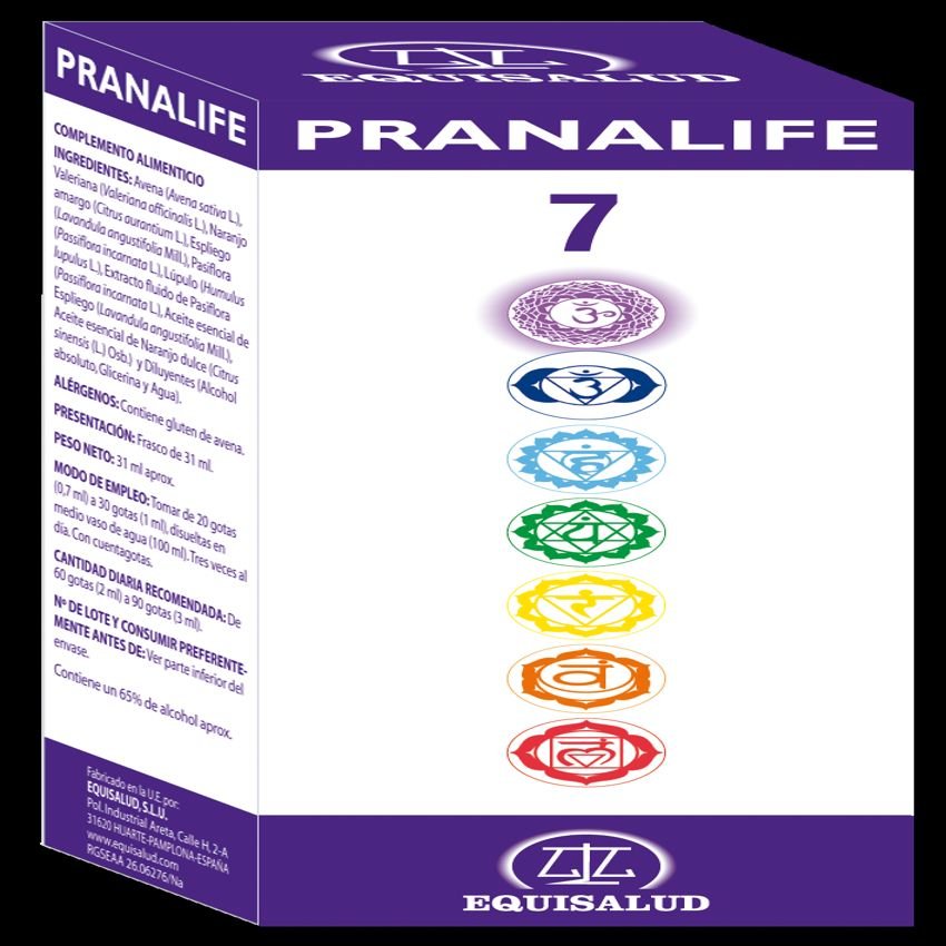 Pranalife 7 · Equisalud · 50 ml: El Centro Energético Pranalife 7 facilita el descubrimiento y fortalecimiento del propósito. Ayuda a encontrar o restablecer el sentido de la vida. Favorece el equilibrio mental y el acceso a la mente superior.