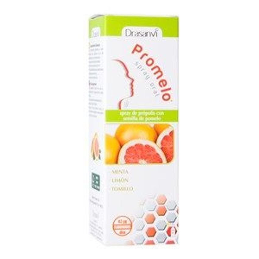 Promelo Spray Oral, es un complemento alimenticio a base de aceites esenciales en sinergia con el própolis y el extracto de semilla de pomelo. Presenta una cánula que permite su aplicación en la garganta de manera precisa y directa. Su cómodo envase permite llevarlo dónde quieras y utilizarlo cuando lo necesites.Ingredientes activos por dosis diaria: 666,66 mg de propolis (12% galangina). 5 mg de aceite esencial de menta. 5 mg de aceite esencial de limón. 2 mg de aceite esencial de tomillo. 84 mcg de extracto seco en semilla de pomelo (42 mcg bioflavonoides).