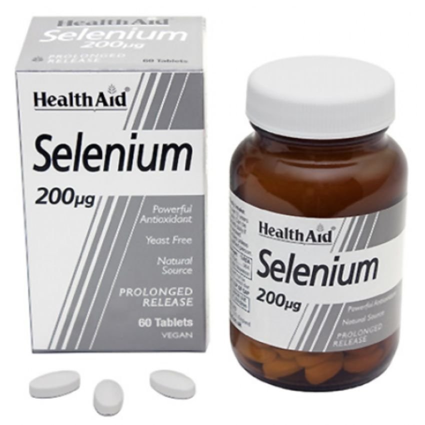 Selenio 200 mcg · Health Aid · 60 comprimidos: El selenio es un oligoelemento esencial utilizado por el sistema inmunológico del organismo por sus propiedades antioxidantes. Ayuda a proteger las células del tejido contra el daño oxidativo causado por los radicales libres. El selenio ayuda en el mantenimiento de un corazón, hígado y próstata sanos.