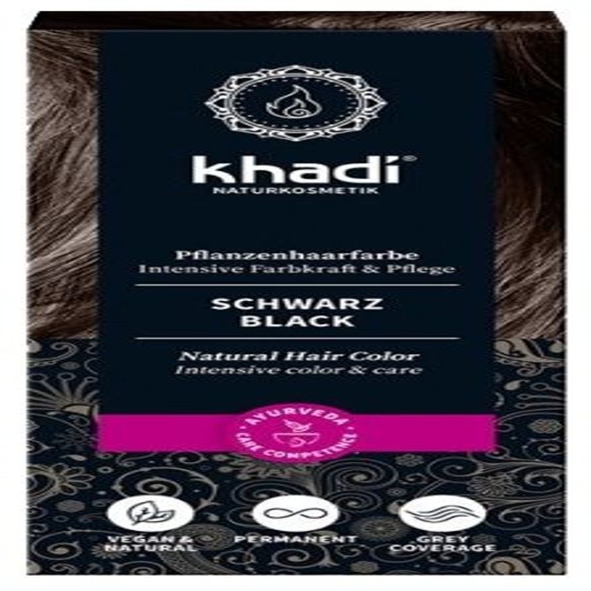 Tinte ayurveda ecológico con Henna e índigo que proporciona al cabello un tono negro intenso natural (en caso de cabello rubio o con canas, es necesario pre-pigmentar con Henna pura o Henna con amla Khadi. Consulte intrucciones de uso). Fórmulas ayurvedas para que tu pelo luzca natural y brillante sin química, consejos: Aplicar en cabello húmedo y limpio. No utilizar champús con siliconas. La pasta debe permanecer siempre cálida, no añadir aceites. Duración del tinte Khadi: 3-4 semanas aproximadamente. El resultado de los tintes vegetales Khadi dependerá del color de pelo. Se recomienda test de color para asegurarse su color deseado. Ingredientes (INCI): Indigofera Tinctoria Leaf Powder, Lawsonia Inermis Leaf Powder, Emblica Officinalis Fruit Powder.