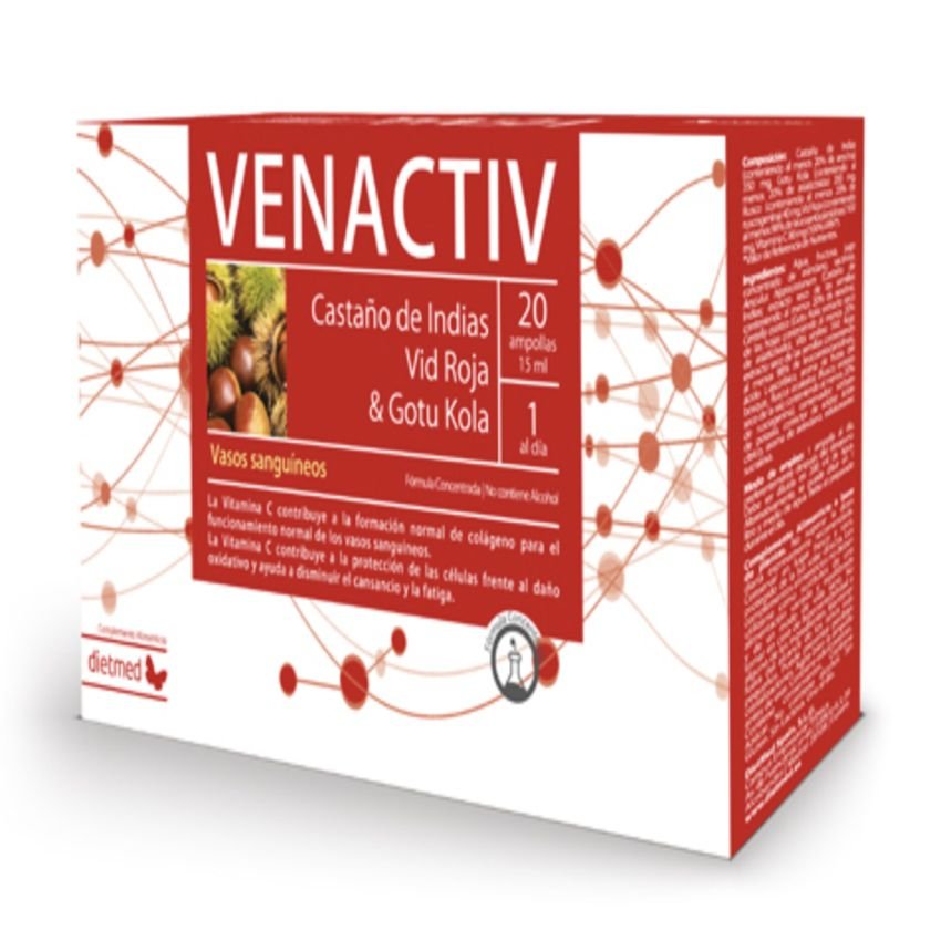 La sensación de piernas pesadas es, en la mayoría de los casos causada por una insufiencia venosa resultante de factores que dificultan el retorno de la sangre al corazón, lo que lleva al estancamiento de la sangre en las venas, provocando dilataciones.Las varices pueden surgir cuando las paredes de las venas, así como sus válvulas, se encuentran ya gravemente afectadas. En una fase inicial, la sensación de piernas pesadas aparece al final del día, pudiendo haber edema en los tobillos, picor y calambres. El sedentarismo, la obesidad, el calor y el uso de vestuario apretado son factores determinantes en la aparición y desarrollo de insuficiencia venosa, pudiendo ser corregidos. La edad (más común a partir de los 40 años, aunque pueda ocurrir también durante la adolescencia), la predisposición genética y el sexo (más común en mujeres que en hombres) son factores importantes en la determinación del riesgo de desarrollo de una insuficiencia venosa.Recomendaciones:⇒ Ejercicio físico moderado: natación, andar a pie, ciclismo. La actividad más indicada para un caso particular debe ser determinada por el respectivo terapeuta.⇒ Mantener un peso adecuado.⇒ No fumar, disminuye los riesgos de poder desarrollar una complicación.⇒ Evitar fuentes de calor directas; no exponer las piernas a la acción de radiadores, calentadores o chimeneas.⇒ Evitar el sedentarismo, evitar pasar demasiado tiempo sentado o de pie. En caso de que sea estrictamente necesario, hacer 3 ó 4 descansos diarios de minutos para mover las piernas y masajearlas, de abajo arriba, para estimular el retorno sanguíneo.⇒ Cuidado con la postura, en caso de que tenga que estar algún tiempo sentado, no cruzar las piernas, porque no favorece el retorno sanguíneo.⇒ No usar ropa apretada (sobre todo en los miembros inferiores y contura). Evite utilizar calzado apretado, así como calzado con tacones altos o completamente raso. El calzado debe tener entre 3 y 4 cm de altura para estimular al máximo el trabajo muscular de la pierna.⇒ Tener el máximo cuidado con la higiene de los pies.⇒ Al final del día de trabajo o después de la práctica de ejercicio, tumbarse y elevar las piernas por encima del nivel del corazón, y permanecer en esa posición durante aproximadamente 30 minutos.⇒ Utilización de medias de descanso.Indicaciones de uso:⊕ En caso de piernas cansadas y pesadas.⊕ Activa la circulación venosa.⊕ Favorece la elasticidad y la flexibilidad de los vasos sanguíneos.Ingredientes activos ampolla: 350 mg de castaño de indias (mínimo 20% aescina). 200 mg de gotu kola (mínimo 20% asiaticosídeo). 40 mg de rusco (mínimo 20% ruscogenina). 100 mg de vid roja (mínimo 95% leucoantocianidinas). 80 mg de vitamina C.