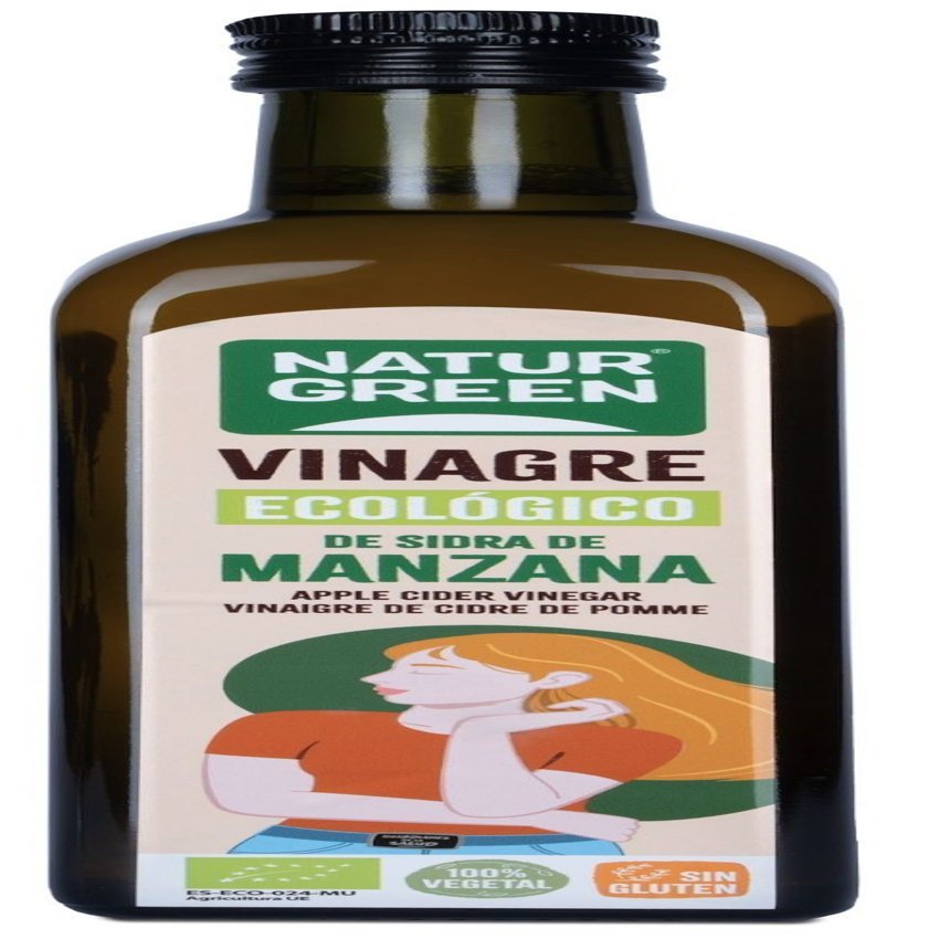 Vinagre de Sidra de Manzana Bio de Naturgreen con la agricultura ecológica. Complemento alimenticio natural.