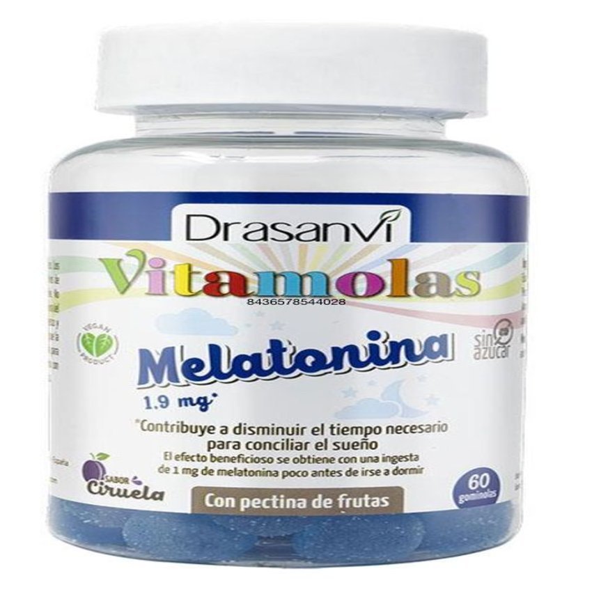 Las Vitamolas de Drasanvi son gominolas elaboradas a base de pectina de fruta (sin gelatina) sin azúcares y sin alérgenos. Las Vitamolas con Melatonina de Drasanvi contienen 1,9 mg de Melatonina pura por gominola. Estas gominolas contienen como único principio activo la Melatonina. Esta sustancia es una hormona que, de manera natural, es segregada por la hipófisis y regulada por la presencia de luz. Esta hormona se relaciona con el control del reloj biológico, sueño-vigilia. La Melatonina tradicionalmente ha sido empleada para contribuir a aliviar la sensación subjetiva del jetlag. La Melatonina contribuye a disminuir el tiempo necesario para conciliar el sueño.